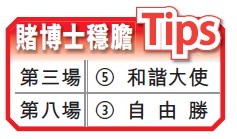 尾场「自由胜」在港三季仅获一W,实力似是有限公司,但牠的谷草1200米赛绩极佳,至今四战三度上名,更是其唯一赢马路程。柏宝上仗搏输後仍锲而不捨,今次肯定再拼。XX士