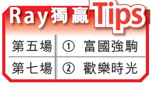 第七场三班1400米。「欢乐时光」两出未逢敌手,前仗以半力击退「生豪」,刚仗升班、转场地及路程,再一次以超级姿态抡元,今仗又同场的「好心思」,阵上完全没法进一步作出威胁,以牠目前的进度,在二班已够争,留在三班出战,佔尽上风。希望重磅和外档不会对牠带来太大困扰,便可保持不败。Ray